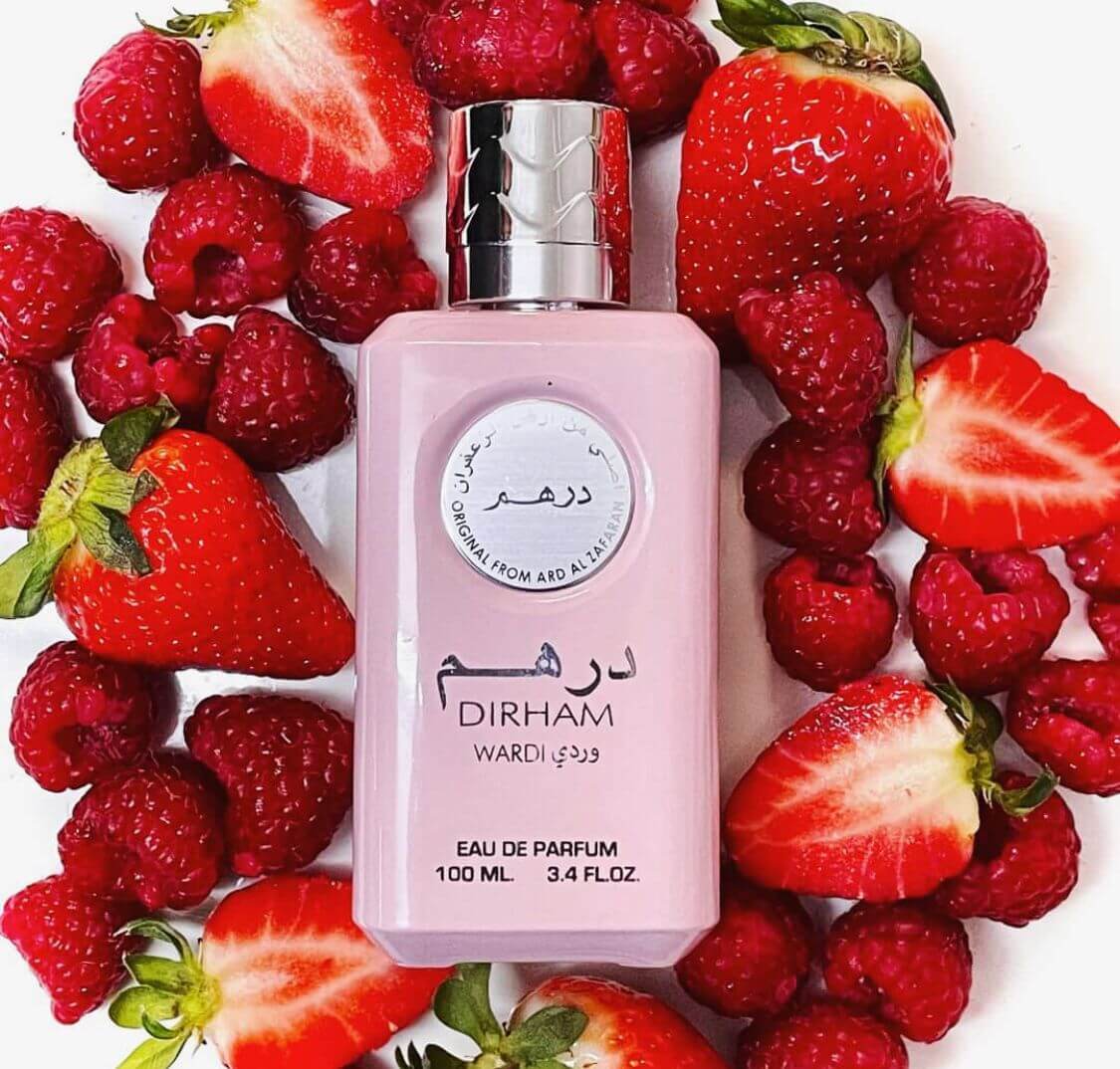 Dirham wardi is an Ard Al Zaafaran fragrance with the most angelic features and one of the most popular of the fragrance house. A delicate feminine scent with evident vanilla and Tonka bean on the undertone. It opens up with rose, orange blossom and black currant. Also has a heart blend of jasmine and pair, all mixed up and bottled into a 100ml of goodness.